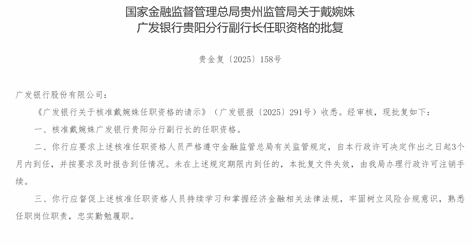 国内在线配资 戴婉姝获批担任广发银行贵阳分行副行长 国内在线配资 作者:配资炒股员 平台:最安全的实盘配资_网上正规实盘配资网站_可查的实盘配资公司 更新:2025-12-18 23:28:21 阅读:195